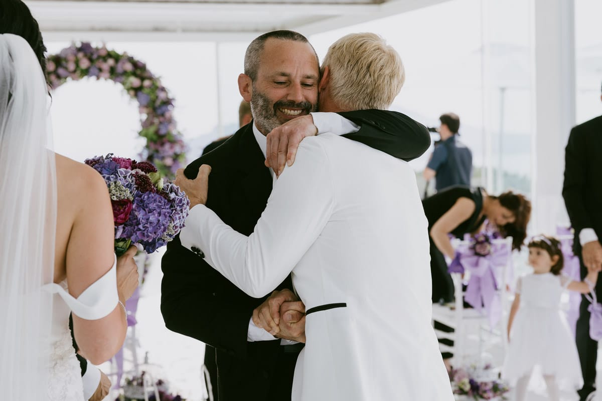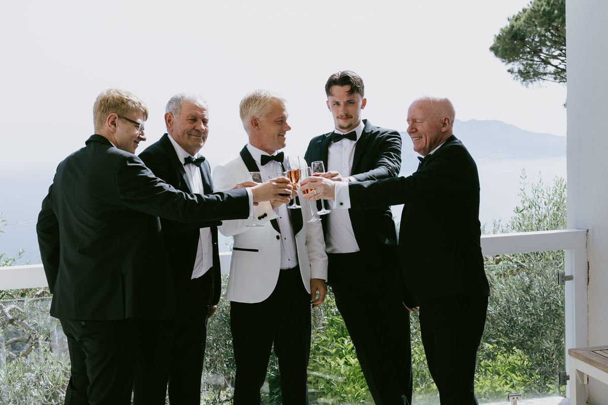 The ceremony was intimate and heartfelt, with just their closest family and friends in attendance. Overlooking the sparkling sea, the couple exchanged vows in a quiet corner of the villa’s panoramic terrace. The view of Capri in the distance and the soft sea breeze made the moment feel suspended in time.
