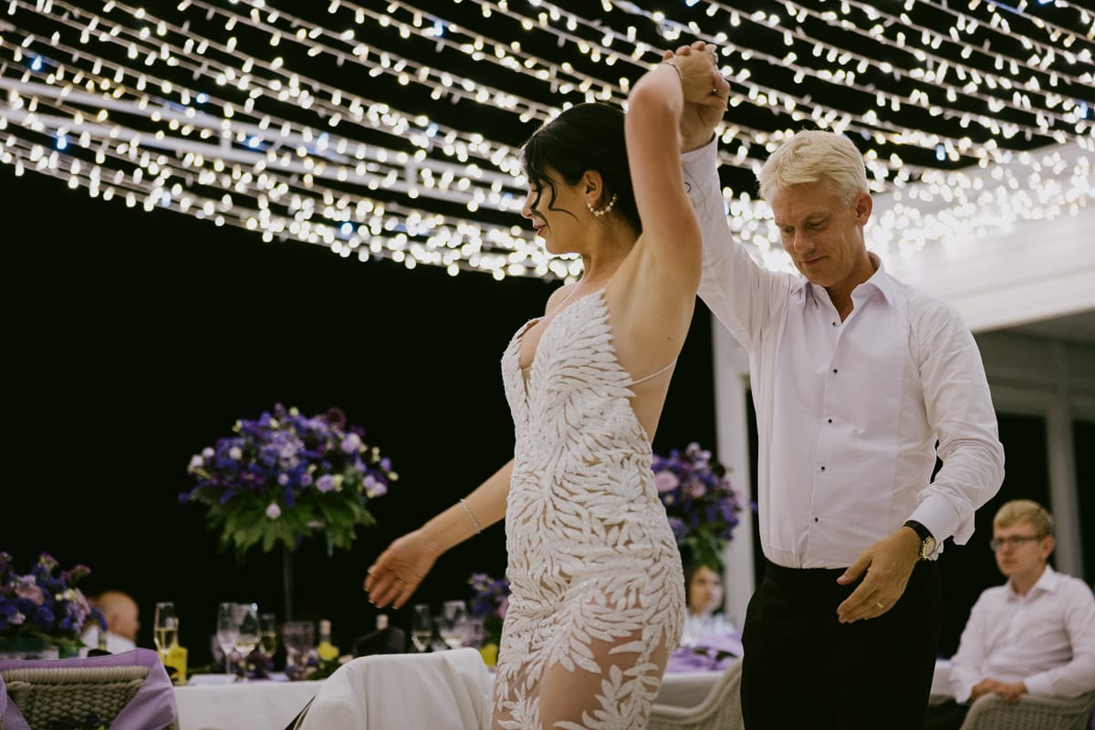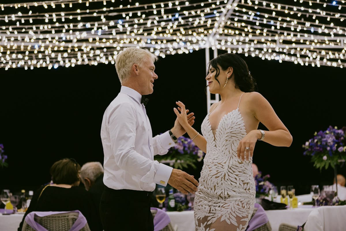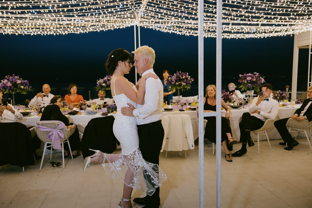Their first dance took place under soft candlelight with the glow of Capri twinkling across the water. It was the kind of scene you dream of—intimate, cinematic, and filled with emotion.