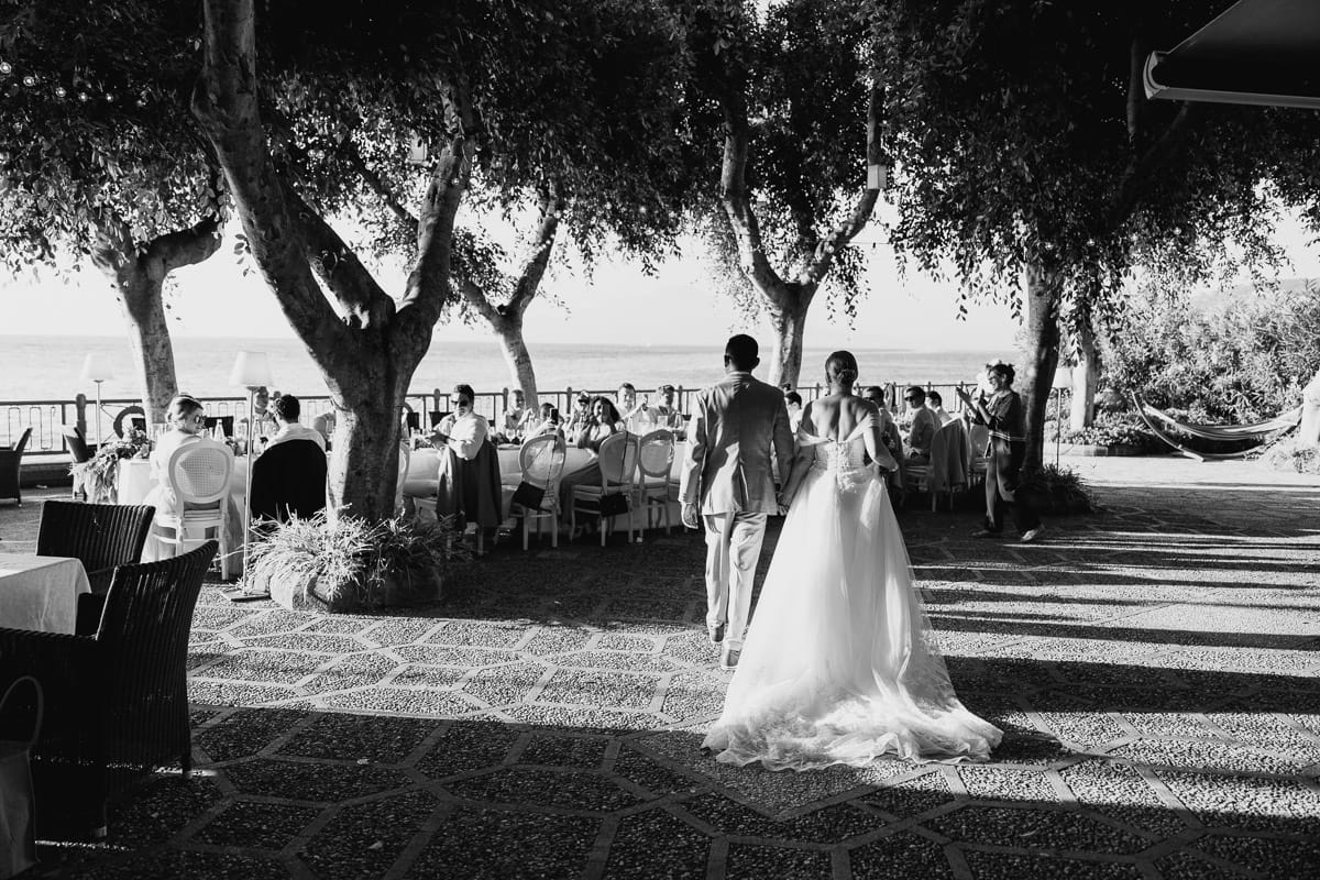 As the sun dipped below the horizon, the atmosphere shifted to one of pure joy as guests gathered on the lower terrace for the bridal party. The gentle lapping of waves against the shore provided a soothing backdrop as the couple and their loved ones danced the night away. The music filled the air with a contagious energy, creating an unforgettable ambiance. For more moments of celebration at the same terrace by the sea, take a look at this civil wedding in Sorrento, where the magic of the setting made for another extraordinary bridal party.