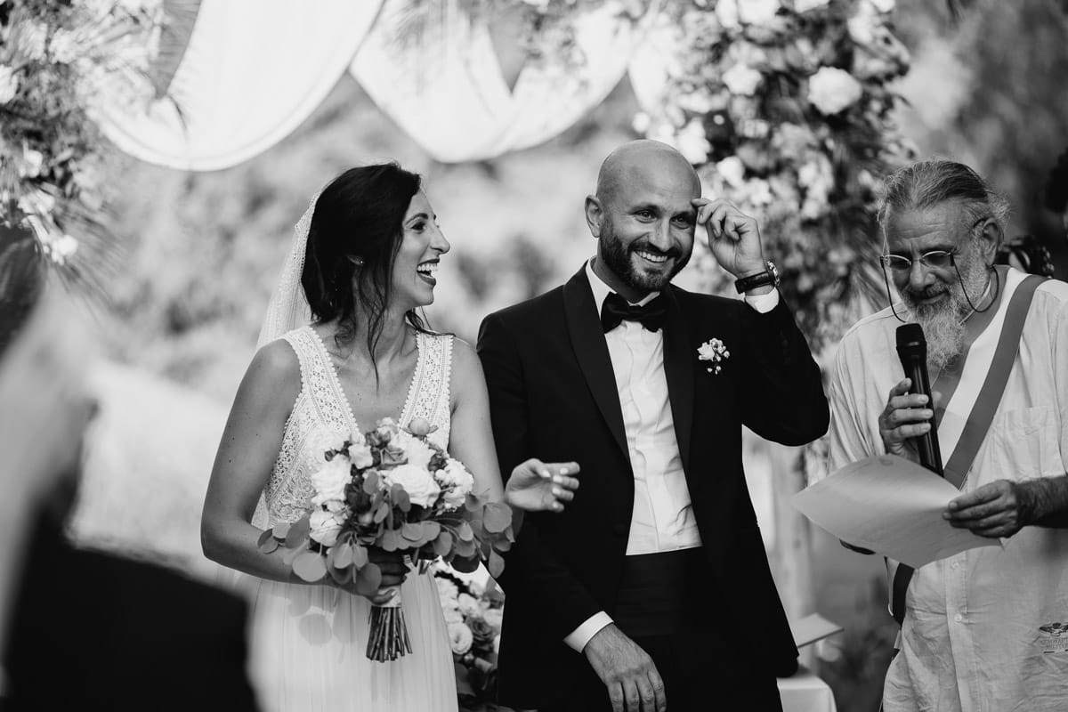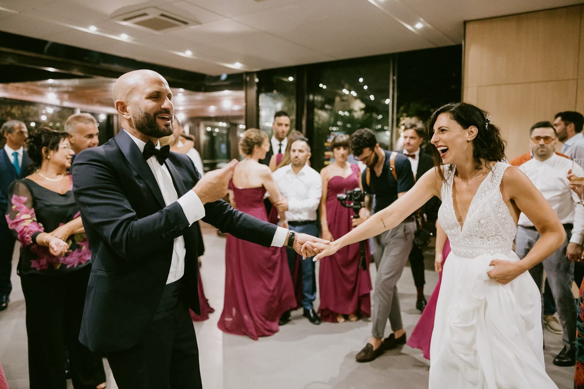 Following lively pronouncements, the reception at Le Trabe brought the party atmosphere to new heights. Alessandra and Giuseppe led rambunctious dances alongside all in attendance as the live band played on. Meanwhile, the multi-talented bride amazed by effortlessly shredding guitar and pounding drums.